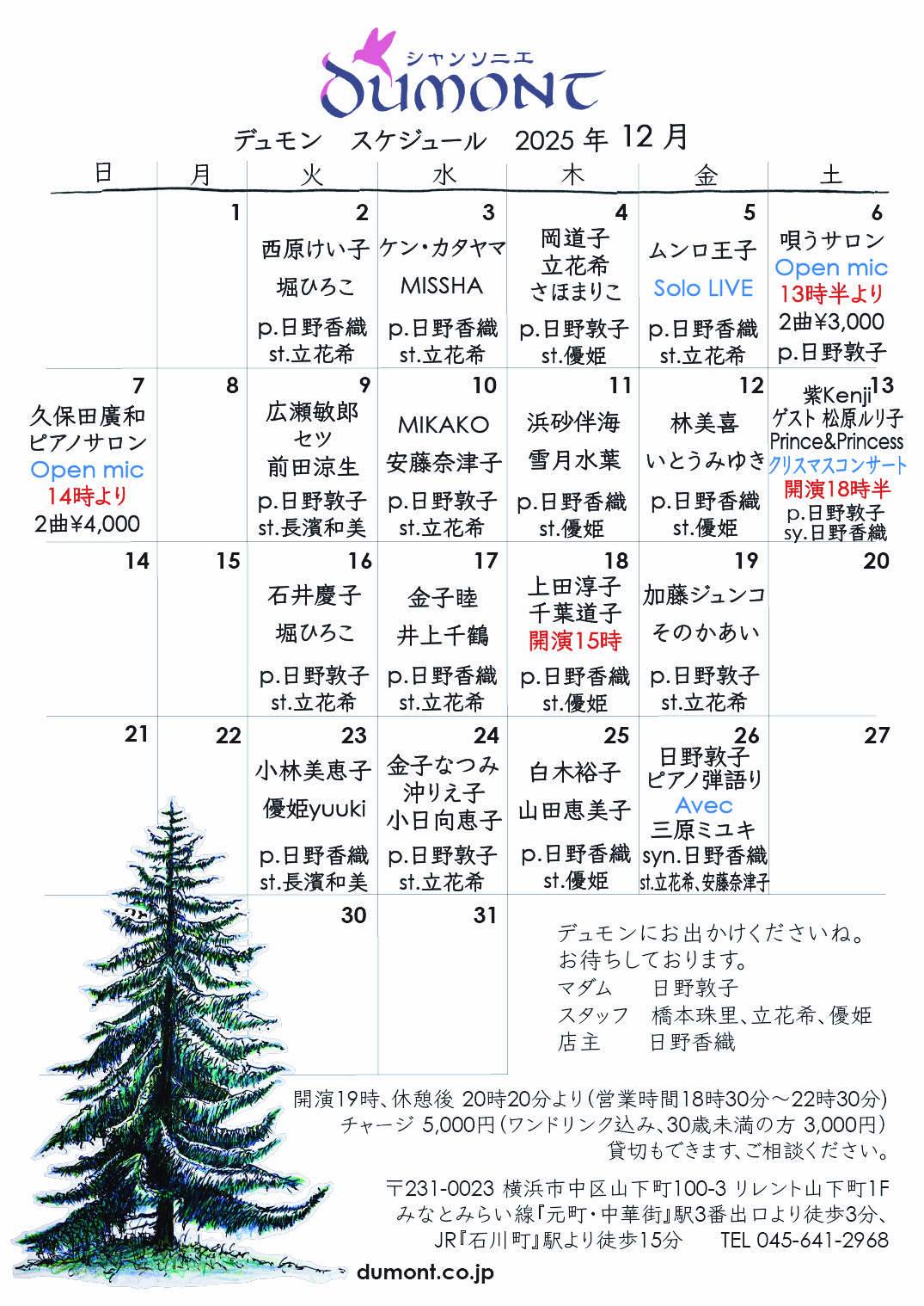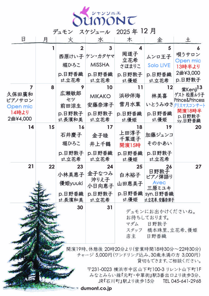 🎵12月のスケジュールです。
